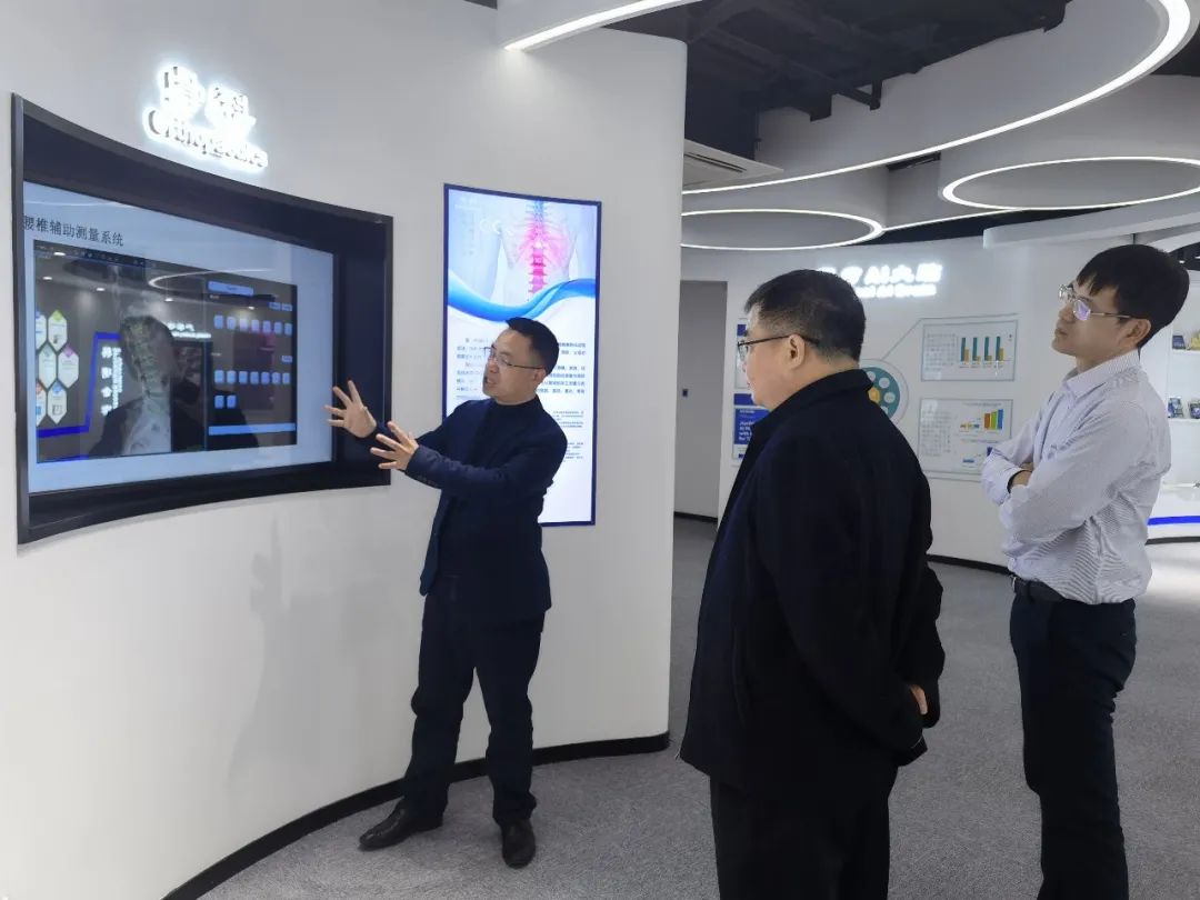 健培科技、啄云智能董事長(zhǎng)程國(guó)華向領(lǐng)導(dǎo)一行詳細(xì)介紹了公司發(fā)展歷程、重大科研專項(xiàng)成果以及人工智能在不同行業(yè)領(lǐng)域的創(chuàng)新應(yīng)用等。作為人工智能輔助檢測(cè)的先行者,程總表示,充分利用AI賦能,聚焦新一代人工智能、大數(shù)據(jù)、云計(jì)算等技術(shù),深耕醫(yī)療以及安檢領(lǐng)域的應(yīng)用實(shí)踐,助力數(shù)字化改革。同時(shí)深化大院大所合作,已與多家知名研究院和高校搭建院企聯(lián)合研發(fā)平臺(tái),建立緊密的“產(chǎn)學(xué)研用”合作關(guān)系。加強(qiáng)創(chuàng)新鏈、產(chǎn)業(yè)鏈協(xié)同發(fā)展,大幅提升科研成果轉(zhuǎn)化效率,搭建人工智能技術(shù)創(chuàng)新中心,推動(dòng)產(chǎn)業(yè)高質(zhì)量發(fā)展,以達(dá)到“檢測(cè)萬(wàn)物、創(chuàng)造安全美好生活”的愿景。