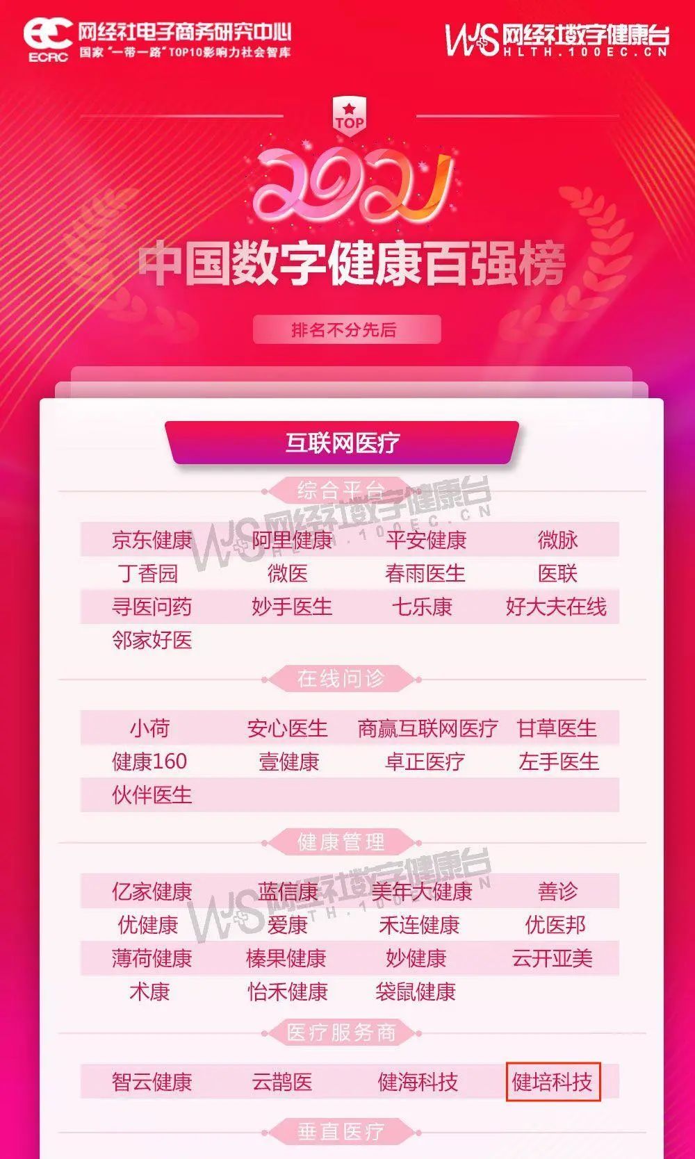 喜訊:健培科技榮登《2021年度中國數(shù)字健康 “百強(qiáng)榜”》