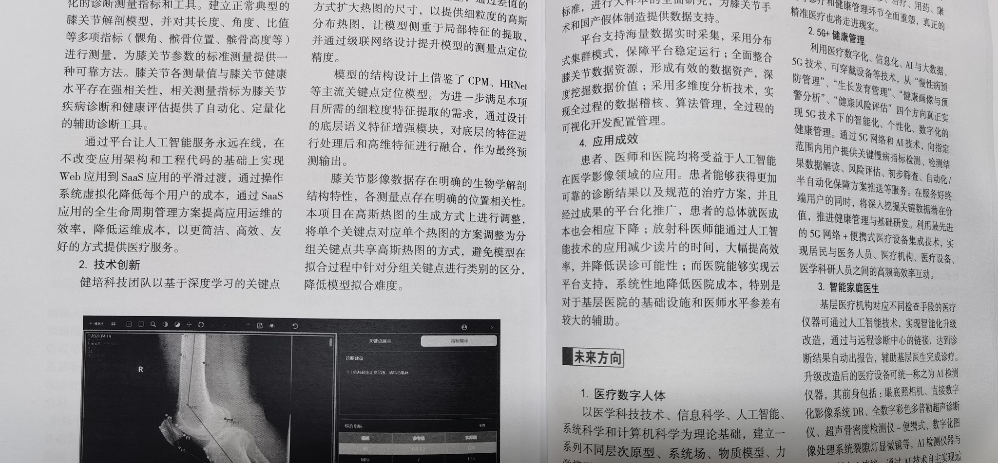 健培在AI+醫(yī)療領(lǐng)域的《中國正常成人膝關(guān)節(jié)影像值數(shù)據(jù)庫平臺構(gòu)建及AI相關(guān)研究》被列入浙江省人工智能典型應(yīng)用場景。 健培中國正常成人膝關(guān)節(jié)影像值數(shù)據(jù)庫平臺,由數(shù)據(jù)中臺、AI應(yīng)用框架和基于大數(shù)據(jù)的智慧應(yīng)用三大部分組成。健培應(yīng)用加速器+人工智能技術(shù)打造中國正常成人膝關(guān)節(jié)影像值數(shù)據(jù)庫,建立高效、精準(zhǔn)的自動檢測平臺。以基于深度學(xué)習(xí)的關(guān)鍵點定位技術(shù)為基礎(chǔ),結(jié)合膝關(guān)節(jié)關(guān)鍵點分布特性和生物學(xué)解剖結(jié)構(gòu)進(jìn)行創(chuàng)新設(shè)計?;颊?、醫(yī)師和醫(yī)院均將受益于人工智能在醫(yī)學(xué)大數(shù)據(jù)領(lǐng)域的應(yīng)用。