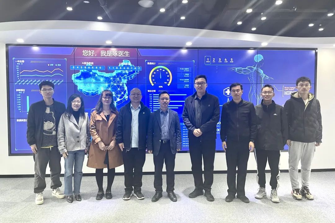 3月30日,西安建筑科技大學(xué)交叉研究院龐鵬飛副院長,劉虎副教授,西北工業(yè)大學(xué)張慧卿研究員等師生一行來訪健培科技。健培科技董事長程國華,總經(jīng)理洪波,副總經(jīng)理、AI專家何林陽,智慧健康部總監(jiān)戚劍鋒等公司領(lǐng)導(dǎo)熱情接待。