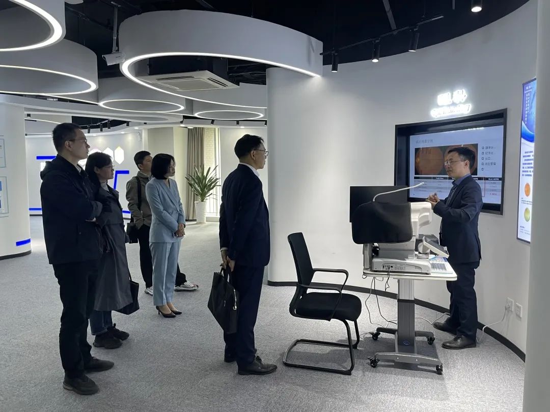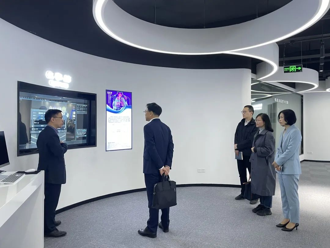 4月12日,農(nóng)工黨浙江省委會(huì)專(zhuān)職副主委兼秘書(shū)長(zhǎng)、省政協(xié)副秘書(shū)長(zhǎng)吳道濤,農(nóng)工黨省委會(huì)調(diào)研部部長(zhǎng)王穎,農(nóng)工黨省委會(huì)調(diào)研部二級(jí)主任科員俞銳一行蒞臨健培科技參觀考察。調(diào)研醫(yī)療健康產(chǎn)業(yè)與人工智能融合發(fā)展情況。浙江醫(yī)學(xué)會(huì)放射分會(huì)主委、浙江省中醫(yī)院放射科主任許茂盛,浙江省衛(wèi)生信息中心副主任郭一,蕭山區(qū)中醫(yī)院骨傷科主任曾林如等專(zhuān)家共同參加研討會(huì)。