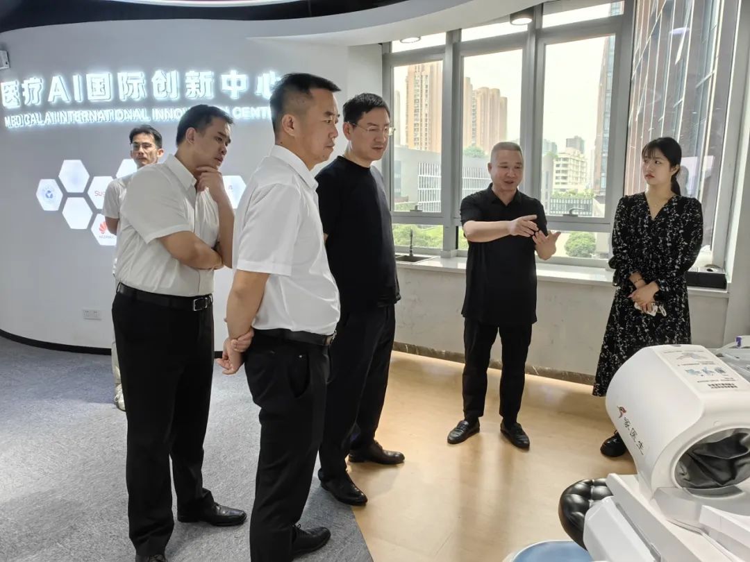 領(lǐng)導(dǎo)們?cè)趨⒂^過(guò)程中交流了兩地科技創(chuàng)新的經(jīng)驗(yàn)和進(jìn)展,對(duì)健培在醫(yī)療健康事業(yè)發(fā)展中作出的努力以及科技轉(zhuǎn)化的成績(jī)表示贊賞。楊市長(zhǎng)表示通過(guò)未來(lái)鄉(xiāng)村、未來(lái)社區(qū)智慧健康場(chǎng)景的建設(shè),實(shí)現(xiàn)優(yōu)質(zhì)醫(yī)療資源下沉,讓專家經(jīng)驗(yàn)走向基層,是運(yùn)用科學(xué)技術(shù)來(lái)推動(dòng)基層醫(yī)療水平的提升,更好的保障百姓生命健康的有力措施。并希望與常熟開展更深入的合作,發(fā)揮新一代人工智能技術(shù)的創(chuàng)新能力,賦能健康常熟建設(shè)行動(dòng)。