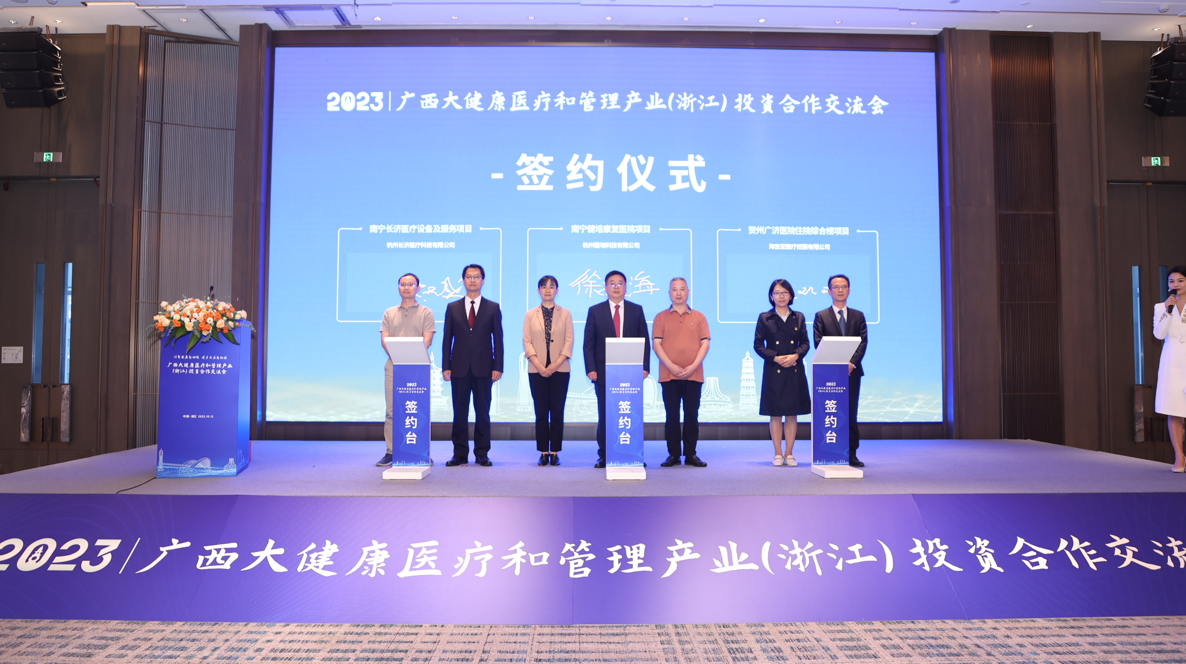 近日,2023廣西大健康醫(yī)療和管理產業(yè)(浙江)投資合作交流會在杭舉辦。廣西自治區(qū)衛(wèi)生健康委黨組成員、副主任周恭偉,自治區(qū)中醫(yī)藥管理局規(guī)劃產業(yè)處處長谷筱玉,自治區(qū)衛(wèi)生健康委藥政處處長何文莉,南寧市衛(wèi)生健康委黨組成員、副主任趙紅洋等領導、專家、企業(yè)家們共同參與。大會上健培科技與南寧市衛(wèi)生健康委舉辦了簽約儀式,開展科技賦能基層醫(yī)療、健康管理的合作。
