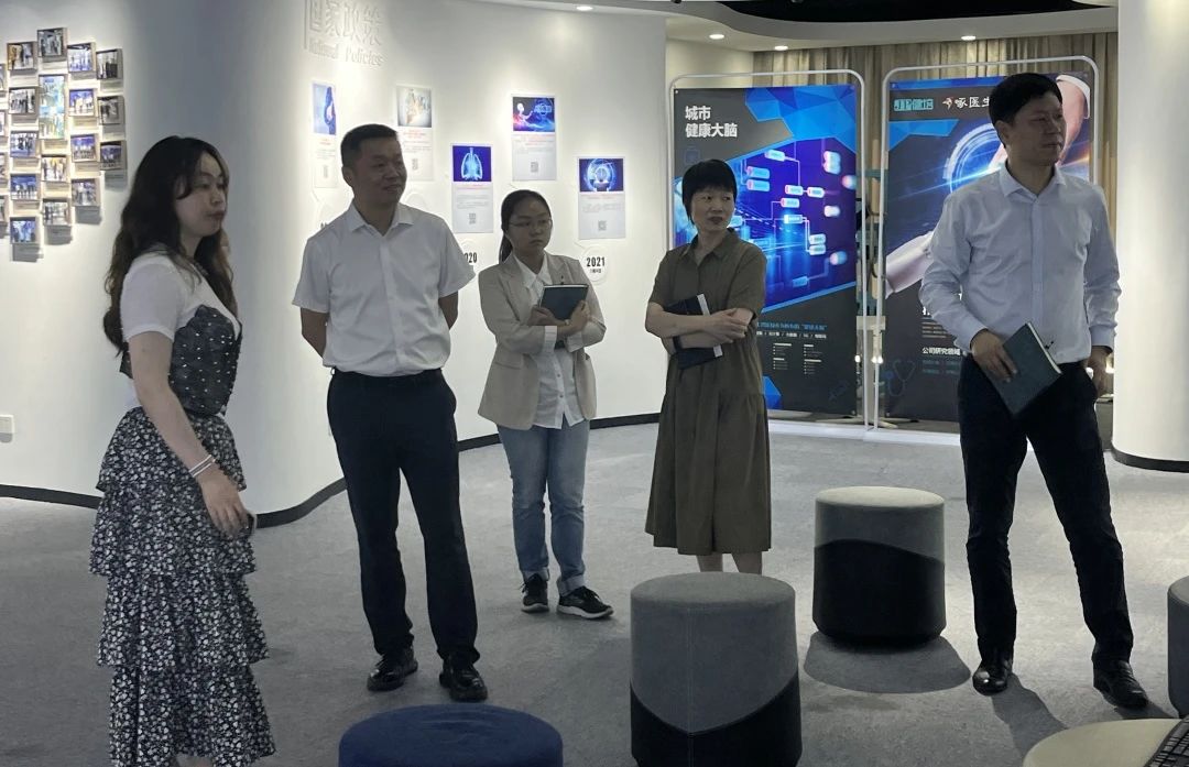 5月24日下午,蕭山區(qū)大數(shù)據(jù)管理服務(wù)中心副主任陳霄飛、蕭山區(qū)大數(shù)據(jù)管理服務(wù)中心副主任李志平、蕭山區(qū)數(shù)據(jù)資源管理局?jǐn)?shù)據(jù)應(yīng)用科科長劉誠征、蕭山區(qū)數(shù)據(jù)資源管理局?jǐn)?shù)據(jù)應(yīng)用科科員馮晨、蕭山城發(fā)公司總經(jīng)理錢建文、蕭山城發(fā)公司助理盛唐等領(lǐng)導(dǎo)一行蒞臨健培科技參觀考察并開展座談。深入了解醫(yī)療大數(shù)據(jù)生態(tài)建設(shè)方面的發(fā)展情況。健培科技董事長程國華、產(chǎn)品總監(jiān)周彬波等領(lǐng)導(dǎo)一行陪同考察。