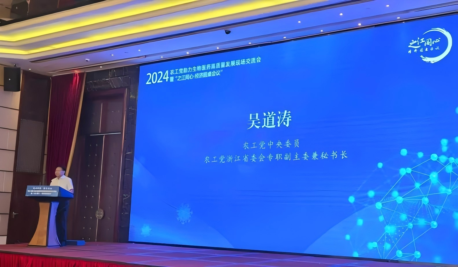 開幕式上,農(nóng)工黨浙江省委會(huì)專職副主委兼秘書長吳道濤、農(nóng)工黨杭州市委會(huì)主委於衛(wèi)國致辭。農(nóng)工黨中央經(jīng)濟(jì)工作委員會(huì)主任、省委會(huì)副主委丁列明發(fā)表了《加強(qiáng)醫(yī)藥創(chuàng)新 提升新質(zhì)生產(chǎn)力》主旨演講。
