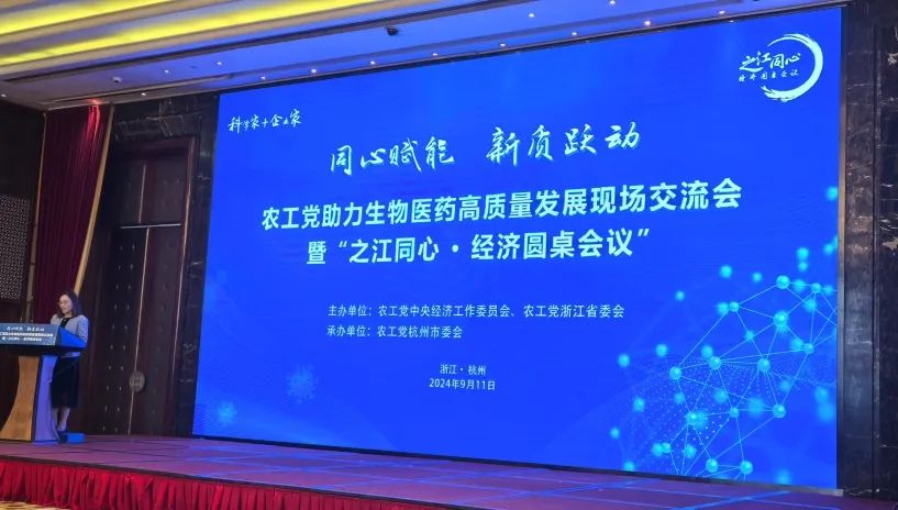 9月11日,由農(nóng)工黨中央經(jīng)濟(jì)工作委員會(huì)、農(nóng)工黨浙江省委會(huì)聯(lián)合主辦,農(nóng)工黨杭州市委會(huì)承辦的農(nóng)工黨助力生物醫(yī)藥高質(zhì)量發(fā)展現(xiàn)場交流會(huì)暨“之江同心 ? 經(jīng)濟(jì)圓桌會(huì)議”在杭州成功召開。本次會(huì)議以“生物制造高質(zhì)量發(fā)展,培育發(fā)展新質(zhì)生產(chǎn)力”為主題,來自生物醫(yī)藥產(chǎn)業(yè)的專家、企業(yè)家齊聚杭州,共同探討生物醫(yī)藥產(chǎn)業(yè)的未來發(fā)展,分享前沿科技與創(chuàng)新的最新成果。