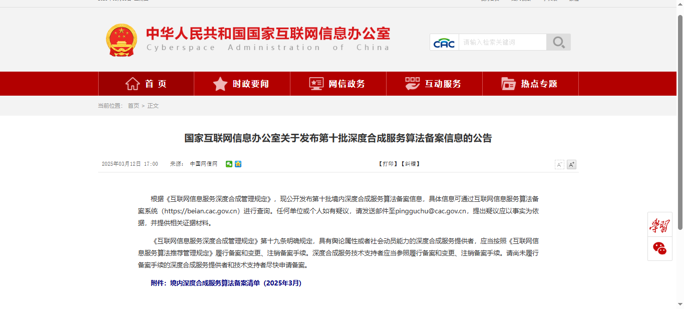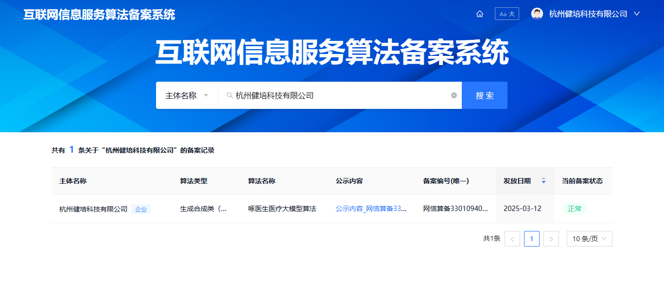 3月12日,國家互聯(lián)網(wǎng)信息辦公室發(fā)布了第十批深度合成服務(wù)算法備案信息的公告,?啄醫(yī)生醫(yī)療大模型榜上有名,這標志著我們的核心技術(shù)能力和產(chǎn)品合規(guī)性再次獲得權(quán)威認可,持續(xù)推動人工智能技術(shù)在醫(yī)療健康領(lǐng)域的深度應(yīng)用。