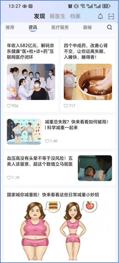 實(shí)例:針對(duì)患者的具體病情情況,為患者推送健康管理方案,包含飲食營(yíng)養(yǎng)方面、運(yùn)動(dòng)作息方面、居家生活方面、風(fēng)險(xiǎn)預(yù)警方面等內(nèi)容,同時(shí)不定期在啄醫(yī)生APP中推送健康管理資訊,方便用戶查閱。