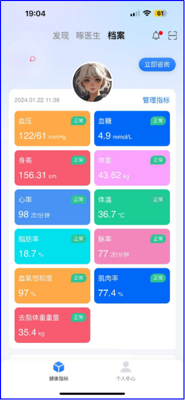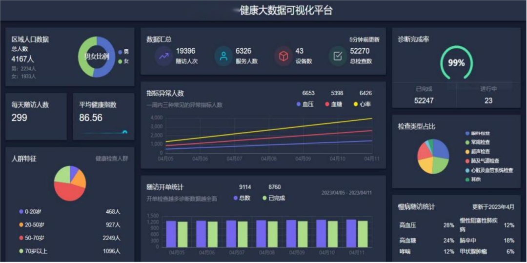 建設(shè)了基于疾病風(fēng)險(xiǎn)評(píng)估的健康畫(huà)像系統(tǒng),為居民提供精準(zhǔn)、個(gè)性化的健康服務(wù),實(shí)時(shí)監(jiān)測(cè)患者的健康狀況,記錄并分析患者的各項(xiàng)生理指標(biāo),為醫(yī)生制定個(gè)性化的治療方案提供數(shù)據(jù)支持?;颊呖赏ㄟ^(guò)移動(dòng)端隨時(shí)查看自己的健康數(shù)據(jù),了解自己的健康狀況,從而更好地參與和管理自己的健康。