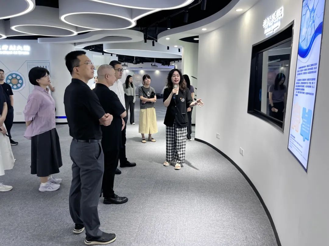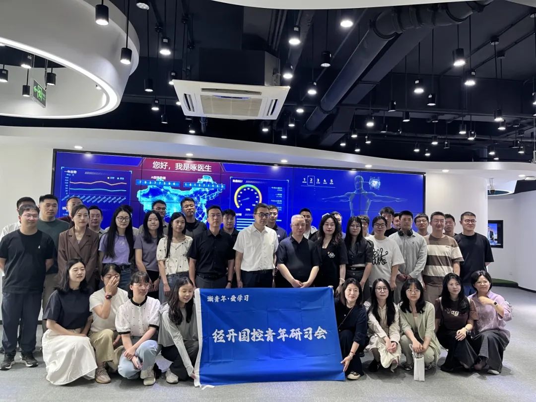 5月27日上午,蕭山區(qū)經開區(qū)國控集團黨委副書記賈興明、集團紀委書記朱夏琦帶領青年研習會赴健培科技進行考察交流??疾煨乱淮斯ぶ悄?醫(yī)療健康行業(yè)的融合創(chuàng)新應用情況,并深入了解企業(yè)在引領醫(yī)療大數(shù)據(jù)、人工智能產品生態(tài)建設方面的發(fā)展經驗。健培科技副總裁徐招海,黨支部書記謝金波等陪同調研。