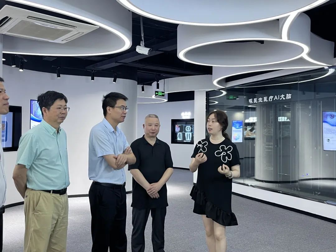健培科技副總裁徐招海帶領(lǐng)領(lǐng)導(dǎo)們親身體驗(yàn)了“啄醫(yī)生AI診室”的一些特色項(xiàng)目,并匯報(bào)公司產(chǎn)品研發(fā)歷程、以及近年來(lái)利用AI技術(shù)在早期篩查、輔助診斷、輔助治療等方面的相關(guān)探索和成績(jī)。在參觀過(guò)程中雙方交流了兩地科技創(chuàng)新的經(jīng)驗(yàn)和做法,領(lǐng)導(dǎo)們對(duì)健培持續(xù)發(fā)揮科技創(chuàng)新引領(lǐng)作用,以及科技成果轉(zhuǎn)化的成績(jī)表示祝賀,希望健培再接再厲,充分利用啄醫(yī)生醫(yī)療大模型等AI技術(shù),更好地發(fā)揮科技對(duì)醫(yī)療以及公共衛(wèi)生健康事業(yè)發(fā)展的支撐引領(lǐng)作用。