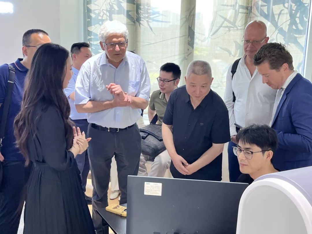 6月26日下午,德國石荷州經(jīng)濟(jì)技術(shù)促進(jìn)中心中國辦事處主任王振帶隊(duì),攜石荷州大學(xué)醫(yī)院(UKSH) ? 實(shí)驗(yàn)與臨床藥理學(xué)科主任英戈夫?卡斯科比教授(Prof. Dr. Ingolf Cascorbi);石荷州大學(xué)醫(yī)院(UKSH) ? 麻醉學(xué)與外科重癥監(jiān)護(hù)醫(yī)學(xué)科及口腔正畸科主任錫南?申教授 (Prof. Dr. Sinan ?en) ;Orthopy Health德國奧拓比健康有限公司聯(lián)合創(chuàng)始人托本?威豪斯 (Torben Weichaus)等11位德國石荷州生命健康代表團(tuán)(Life science delegation from Schleswig-Holstein, Germany)赴健培科技考察調(diào)研。深入了解醫(yī)療AI國際化發(fā)展方向和未來趨勢,以及新一代人工智能在數(shù)字醫(yī)療領(lǐng)域的場景應(yīng)用和產(chǎn)業(yè)化前景。