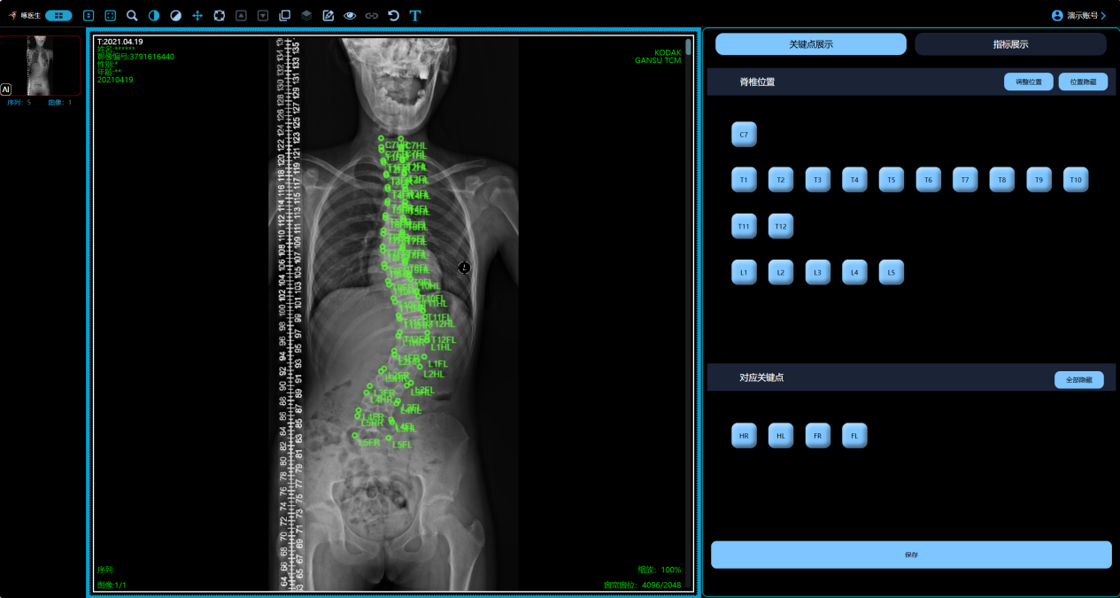 啄醫(yī)生全脊柱定位智能輔助測(cè)量系統(tǒng),可以很好的針對(duì)兒童青少年脊柱彎曲異常提供解決方案。實(shí)現(xiàn)了對(duì)全脊柱影像的智能化檢測(cè)與定量分析,能夠精確地對(duì)全脊柱進(jìn)行測(cè)量和評(píng)估,提升診斷的準(zhǔn)確性和效率。早期癥狀隱蔽,多數(shù)孩子無疼痛不適,容易被忽視;但側(cè)彎角度(Cobb角)會(huì)隨著年齡增長(zhǎng)和生長(zhǎng)發(fā)育逐漸加大,在青春期發(fā)展最快。一旦超過40°,可能需要手術(shù)矯正,因此早發(fā)現(xiàn)、早干預(yù)是關(guān)鍵。