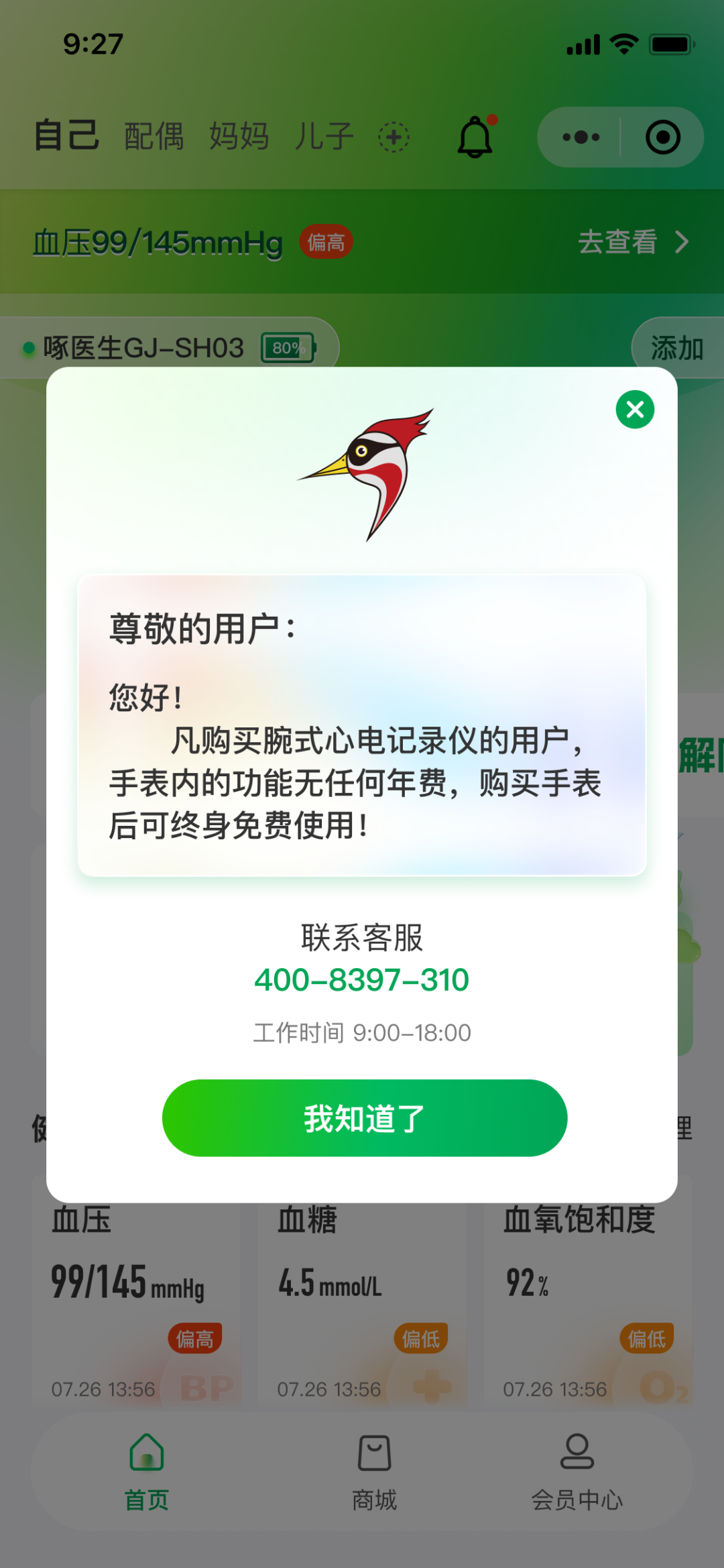 三、我司官方服務(wù)熱線400-8397-310,工作時(shí)間:9:00?18:00。有關(guān)于啄醫(yī)生腕式心電記錄儀的任何問題請(qǐng)撥打我司官方服務(wù)熱線,如有上述行為請(qǐng)及時(shí)聯(lián)系我司或向當(dāng)?shù)毓矙C(jī)關(guān)、監(jiān)管部門舉報(bào)。