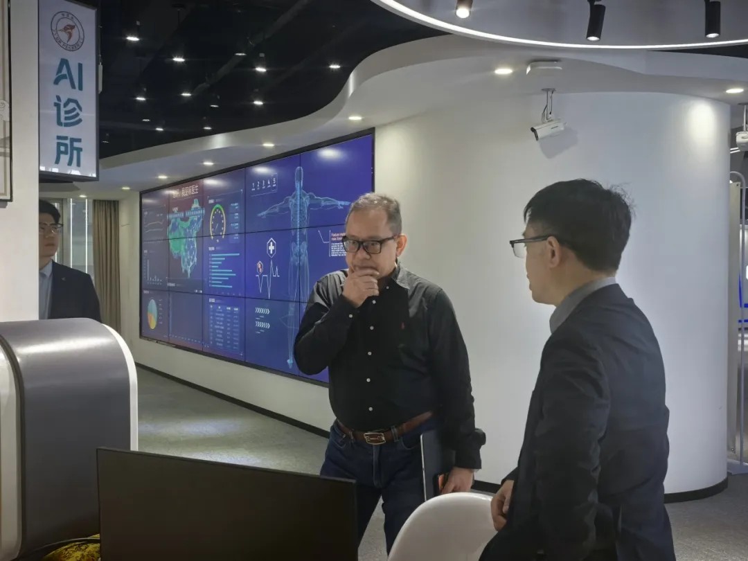 在參觀過程中,程總詳細(xì)介紹了自2012年由海外歸國(guó)創(chuàng)立健培以來十四年的發(fā)展歷程,以及公司在醫(yī)療人工智能領(lǐng)域的創(chuàng)新成果。同時(shí),雙方圍繞心血管疾病臨床診療、人工智能輔助臨床決策支持系統(tǒng)(AI-CDSS)的創(chuàng)新應(yīng)用以及智慧醫(yī)療國(guó)際化發(fā)展等展開了深入交流。Dato’ Dr. Suhaini Kadiman對(duì)健培科技啄醫(yī)生系列產(chǎn)品與解決方案表示高度認(rèn)可,尤其對(duì)基于HealthView專病AI-CDSS智能體平臺(tái),構(gòu)建覆蓋診前、診中、診后的全周期智能管理體系等方面印象深刻。并現(xiàn)場(chǎng)體驗(yàn)了智能檢測(cè)設(shè)備和穿戴設(shè)備,親身感受如何利用AI即時(shí)生成檢測(cè)報(bào)告,這是啄醫(yī)生醫(yī)療大模型技術(shù)的實(shí)際應(yīng)用,滿足衛(wèi)健、公衛(wèi)、醫(yī)院、醫(yī)生、病患不斷增長(zhǎng)的實(shí)際需求。