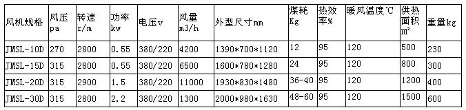 水暖溫室禽舍加溫機(jī)主機(jī)技術(shù)數(shù)據(jù):